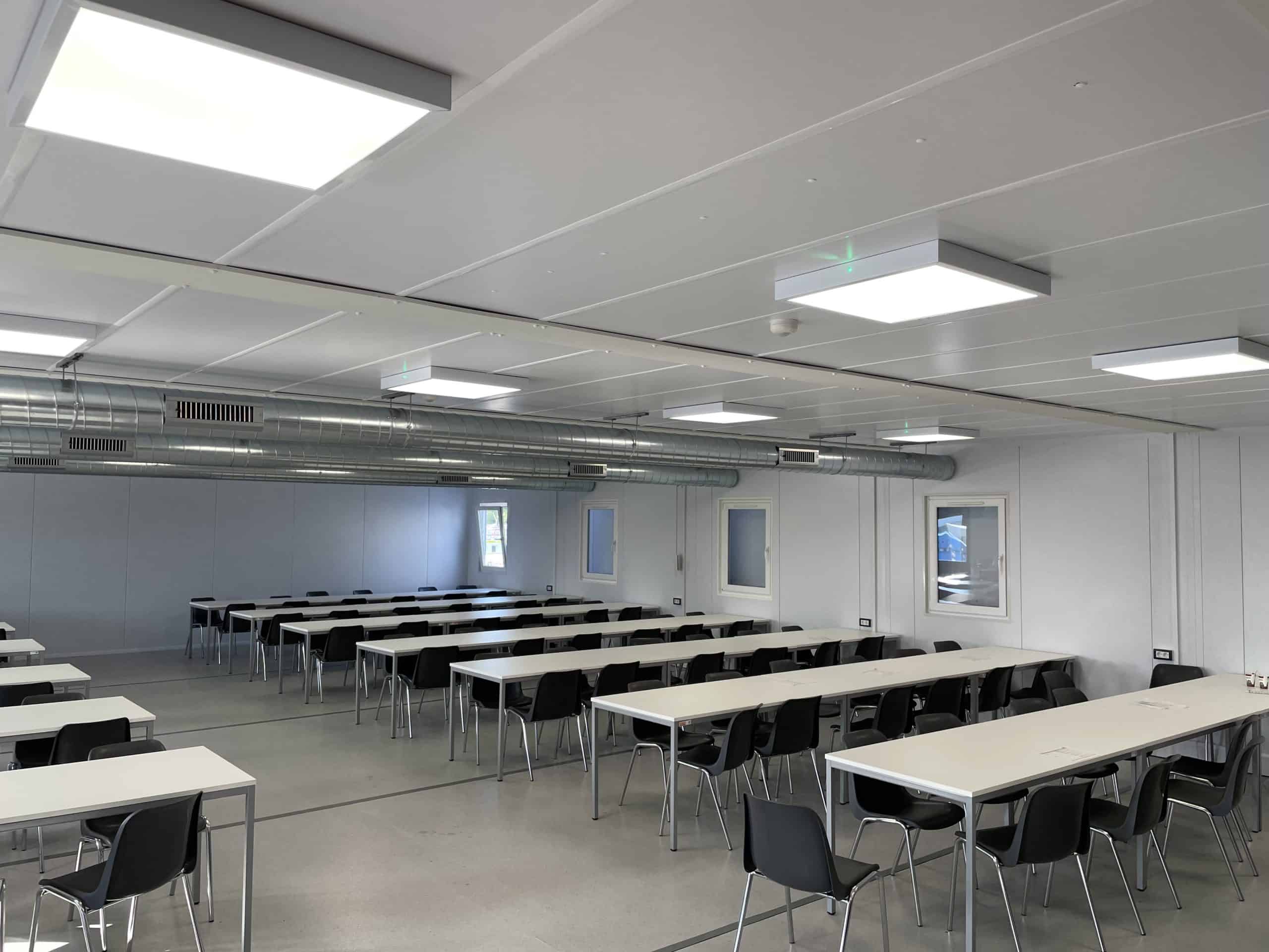 In Europe, temporary accommodation is typically small, boxed and restrictive for construction teams, is it was important that Premier delivered the complete opposite – open spaces with high ceilings and a strong perspective of the space available.