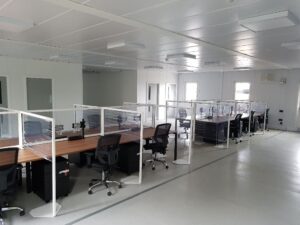 The two air-conditioned buildings comprised washrooms, lockers, canteen, prayer rooms, private offices, open plan offices, meeting rooms, and board rooms.