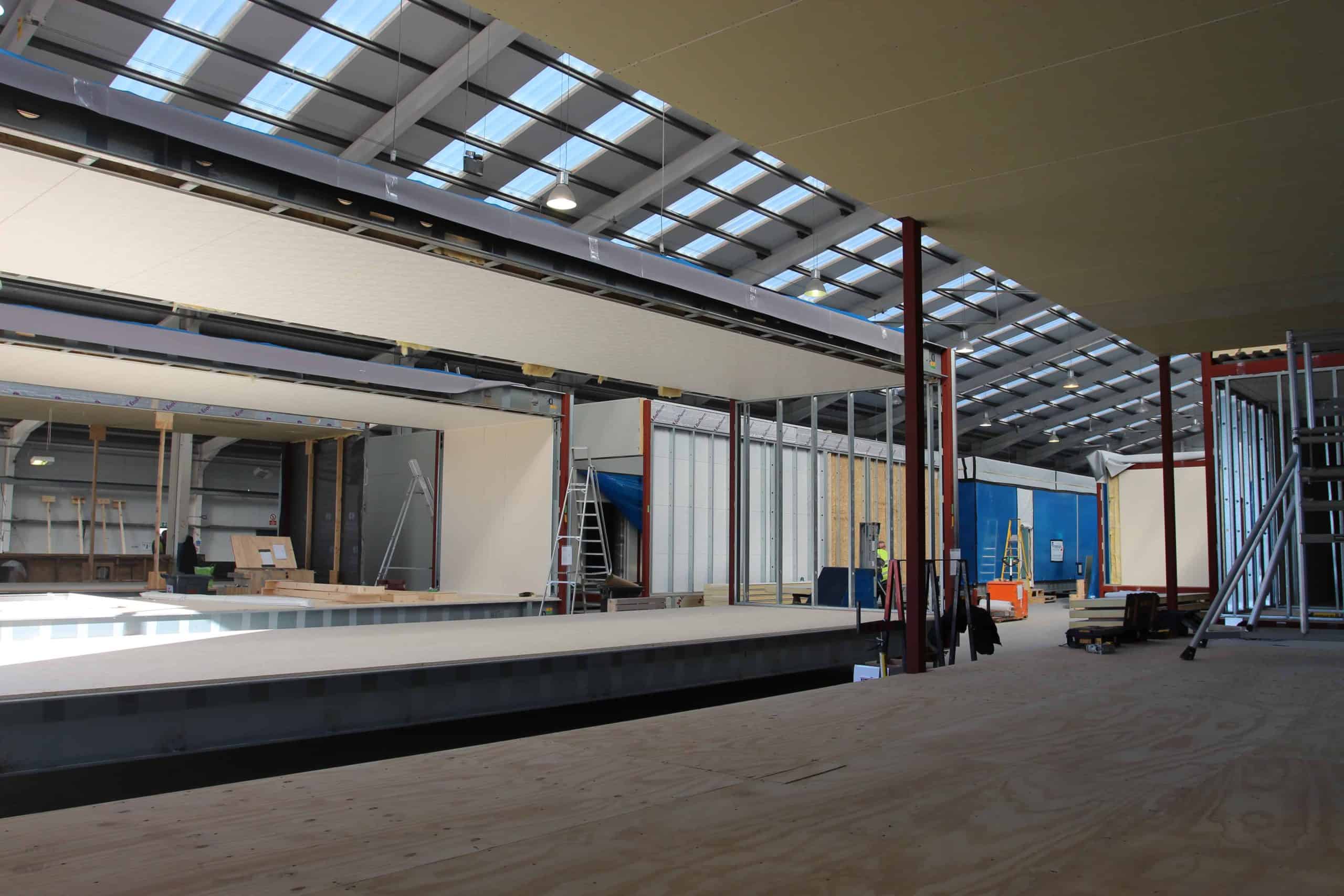 The innovative lifting frame and safety carousel was recognised for its importance in reducing the potential for onsite accidents and injuries, receiving a HPC Excellence Award for Best Safety Innovation.Inviting office and welfare spaces provided enhanced workplace environments to help attract and retain a specialist workforce, with each building providing welfare facilities for over 2,000 workers and office facilities for 800 people. Each building includes a 700-seat restaurant, locker rooms, medical facilities and showers. Designed to mirror the quality of a permanent build, each building has been specially designed to ensure it can withstand the conditions unique to the coastal environment of the site for the ten years it is required. Working under full nuclear licence, the project team ensured the logistical installation of the building was meticulously coordinated and that the workforce was fully trained, with site access controlled.