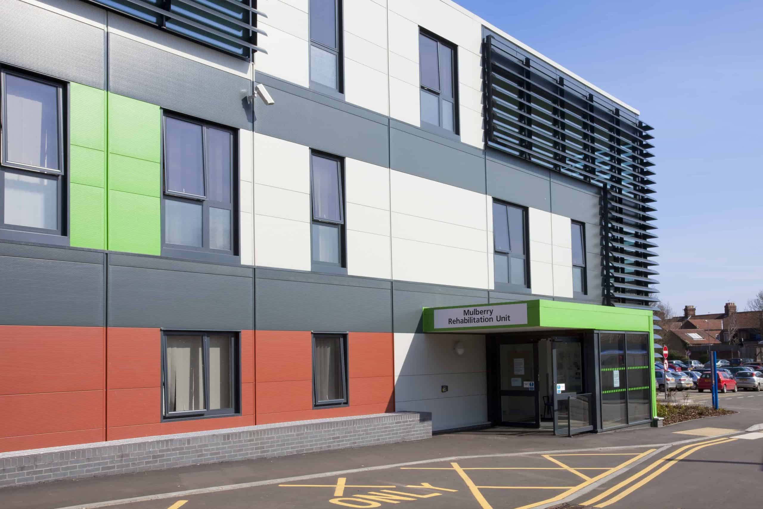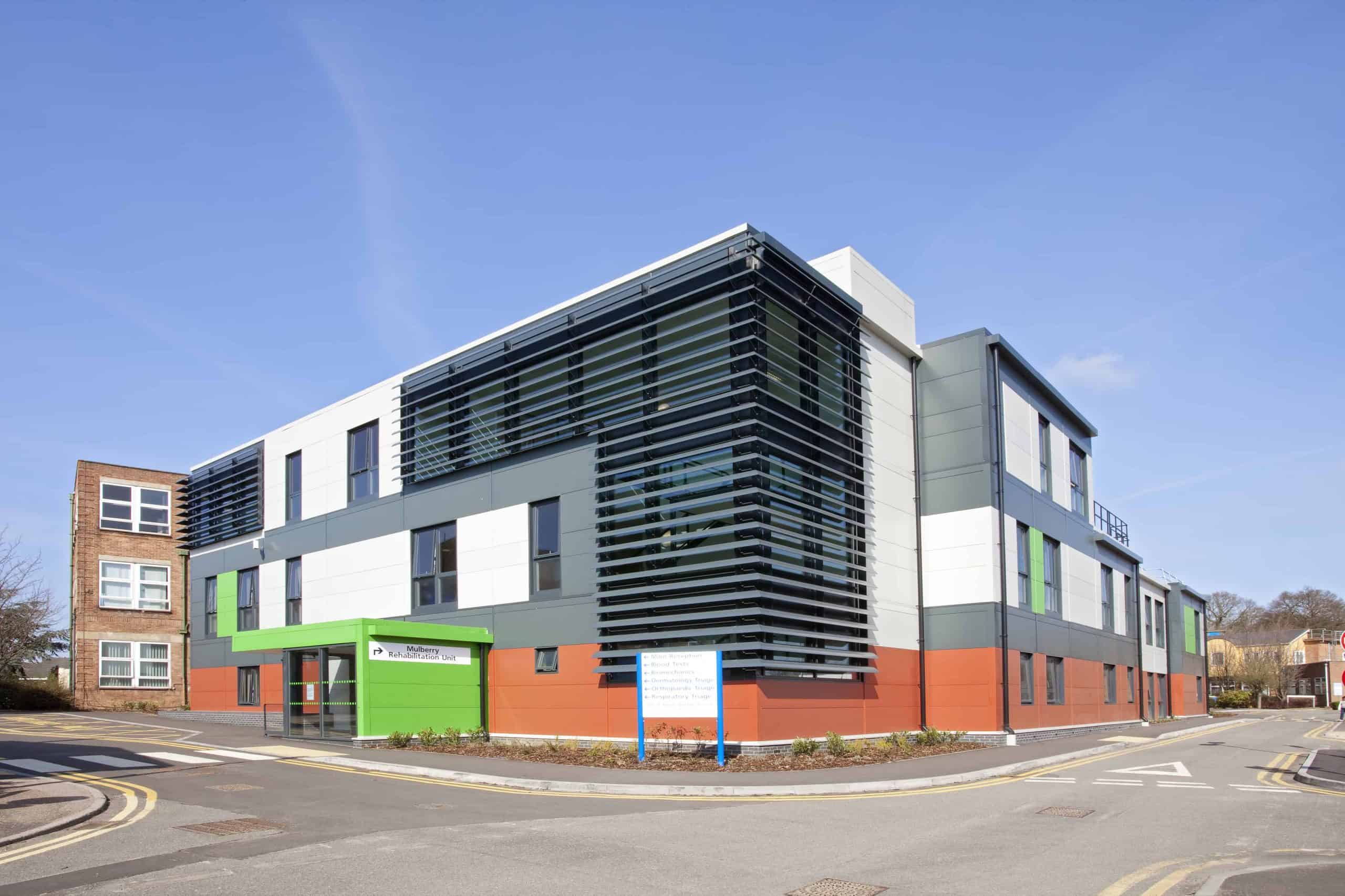 Working closely with the hospital Premier Modular built the Mulberry Rehabilitation Unit housing two 24-bed wards in addition to specialist therapeutic provision.The unit was designed to meet BREEAM ‘excellent’standards and has ecological features including a rainwater harvester for toilet flushing and an air-to-water heat pump. The pump is self-contained on the building’s roof and provides domestic hot water for the under-floor heating system.