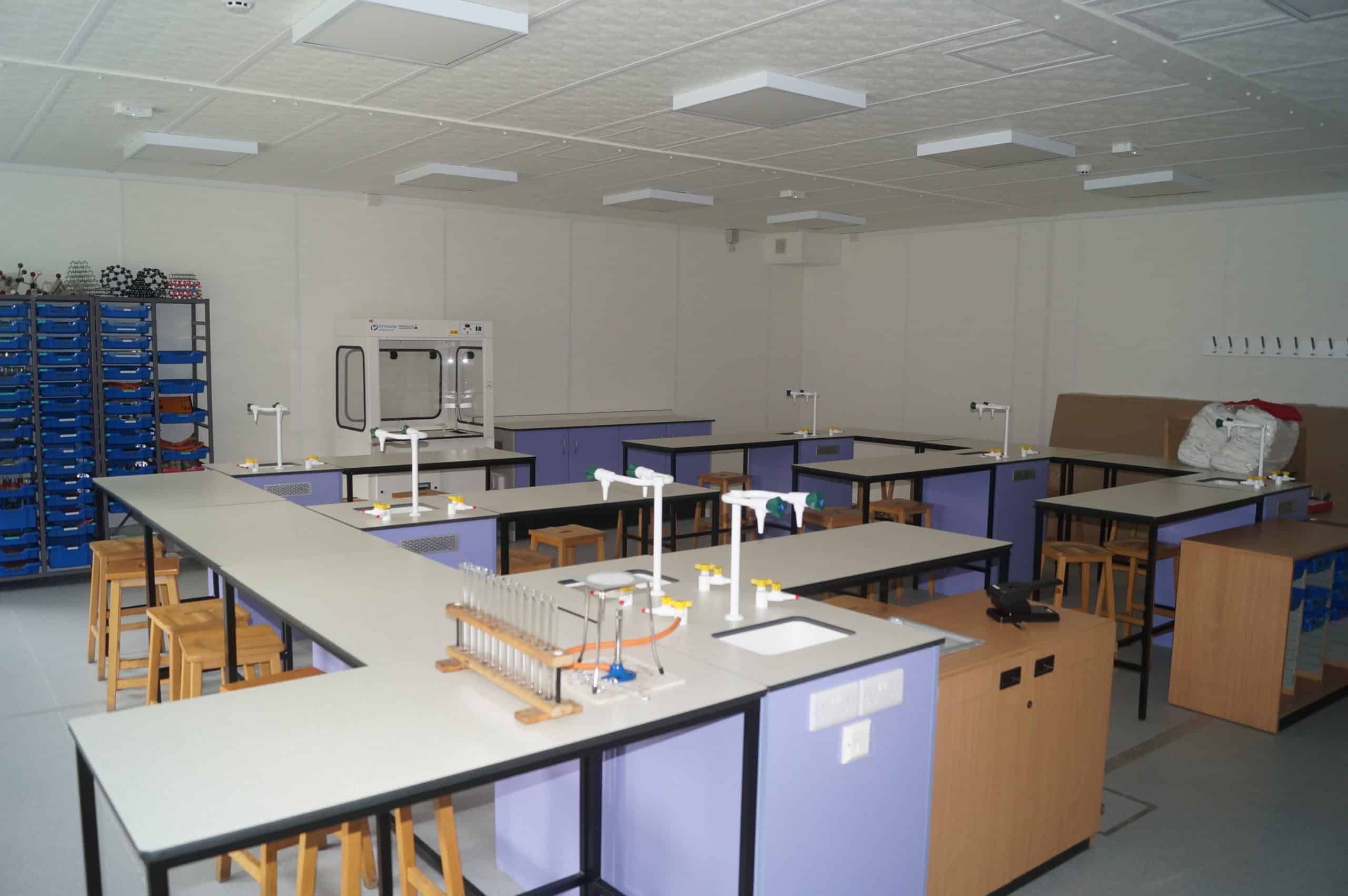 A two-storey, 60-module building was designed and delivered in 11 weeks to ensure minimum disruption and reduce health and safety risks.With the requirement for specialist facilities, we sourced and delivered a range of equipment and fittings including full science department furniture and a fume extraction system, which required complex monitoring and evaluation throughout.